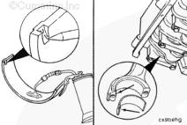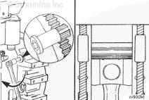 如果使用帶式活塞環(huán)壓縮器,確保帶的內(nèi)側(cè)沒有掛在活塞環(huán)的缺口并折斷活塞環(huán)。 |