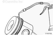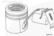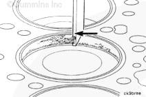 用發(fā)動(dòng)機(jī)盤車工具(零件號(hào) 3377371)旋轉(zhuǎn)曲軸,直到活塞位于積碳(在活塞環(huán)行程區(qū)域的上方)下方。
