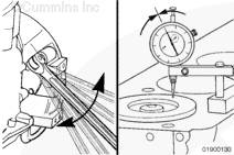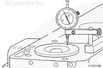 旋轉(zhuǎn)曲軸至上止點(diǎn)。順時(shí)針和逆時(shí)針旋轉(zhuǎn)曲軸,查找千分表最大讀數(shù)。記錄測(cè)量結(jié)果。