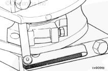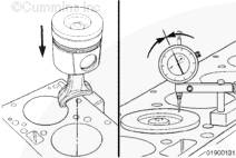 使用細(xì)磨石去除缸蓋頂面上的所有毛刺。將深度規(guī)(零件號(hào) 3823495)置于缸體頂面上調(diào)零。