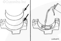 將軸瓦裝入連桿和連桿蓋中。確保軸瓦上的定位舌位于連桿蓋和連桿的槽中。