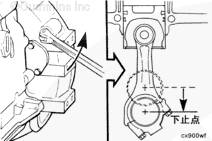 將連桿軸頸放置在要安裝的活塞下止點(diǎn)。