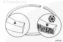 注: 磨損的標(biāo)志是集中的縱向擦痕 (B)。鍍鉻層磨穿,并且環(huán)面比新環(huán)(A)的無光光潔度要亮。
