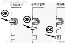 對那些沒有明顯損壞的氣缸,檢查有無下列可能引起密封不良的情況:活塞環(huán)安裝不正確 活塞環(huán)磨損或損壞。
