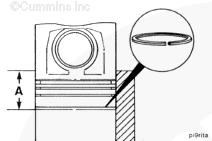 將每個(gè)活塞環(huán)放置在缸體頂面(A)以下 89 mm [3.5 in] 處,并使用活塞將其推入缸孔。