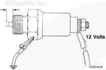 在電氣端子上施加 12 VDC,并將元件六邊形部分接地。電磁閥的電磁線圈必須向外推柱塞。如果施加電壓后沒有向外推柱塞,則說明電磁閥損壞,必須予以更換。