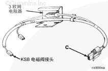 電磁閥式 KSB 導(dǎo)線線束在測量組件接頭的端口 C 與 KSB 電磁閥接頭之間連接的導(dǎo)線中有一個 3 歐姆電阻器。3 歐姆電阻器安裝在一個支架上,后者吸收電阻器產(chǎn)生的熱量,作為一個散熱設(shè)備使用。